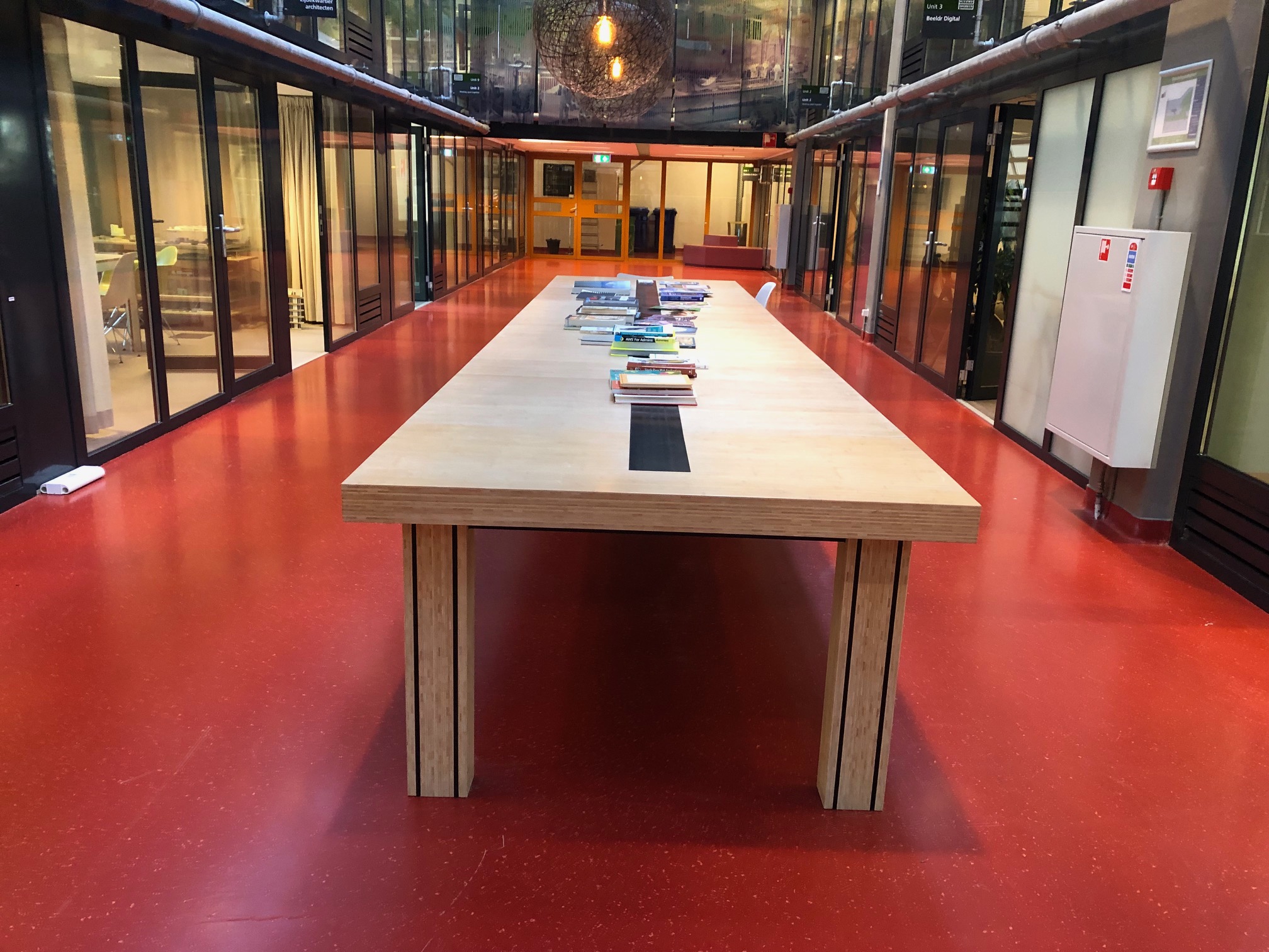 Helaas, deze schitterende tafel gaat weg. Hij staat in de “rode gang” op de begane vloer.